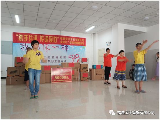 福利院中这群特殊的群体,他们需要社会各界更多的关心关爱,我们希望能通过一己之力,给他们带去帮助、带去温暖。此次的福利院之行,我们所做的事或许微不足道,但是我们将在心里深深地记着他们,记着社会上还有那么一个等待我们关爱的特殊群体。宝丰管桩,用心传递爱心!